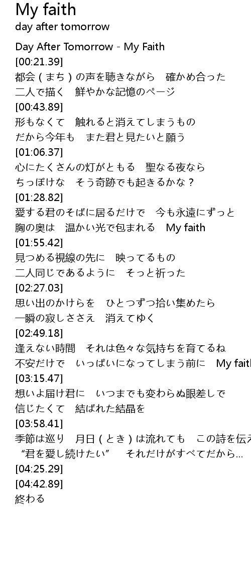 | [00:00.00] | Day After Tomorrow - My Faith |