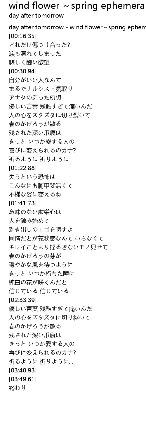 | [00:00.00] | day after tomorrow wind flower spring ephemeral |