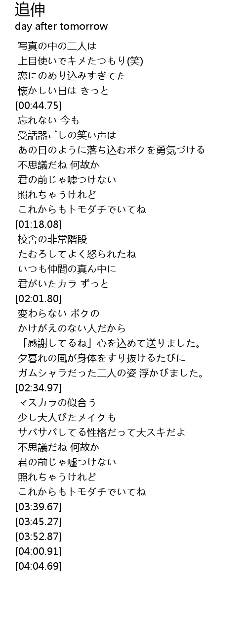 | [03:34.48] | これからもトモダチでいてね |