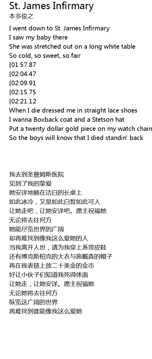 I went down to St. James Infirmary |