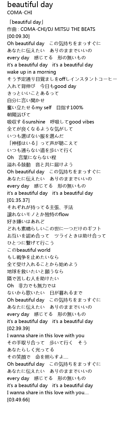 | [00:01.30] | 「beautiful day」 |
