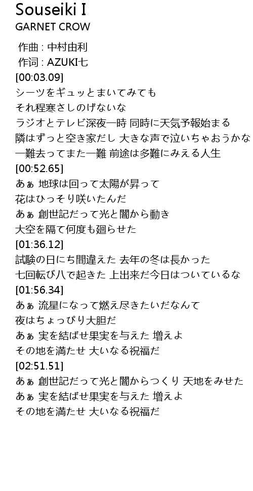 | [02:51.76] | あぁ 創世記だって光と闇からつくり 天地をみせた |