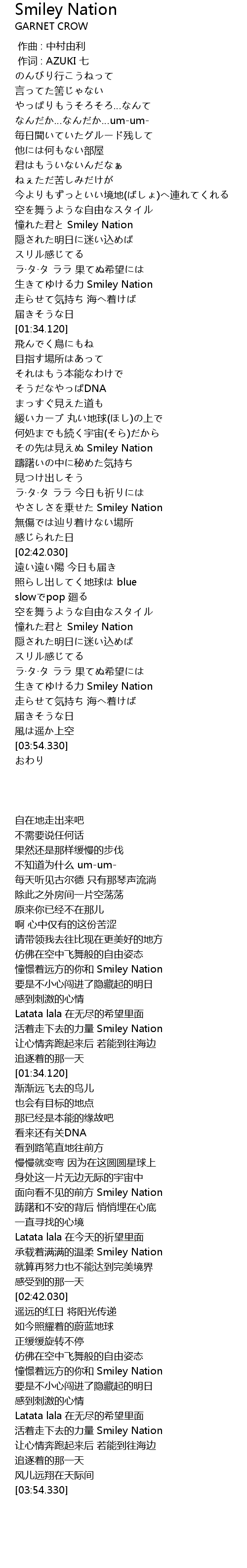 | [02:29.710] | やさしさを乗せた Smiley Nation |