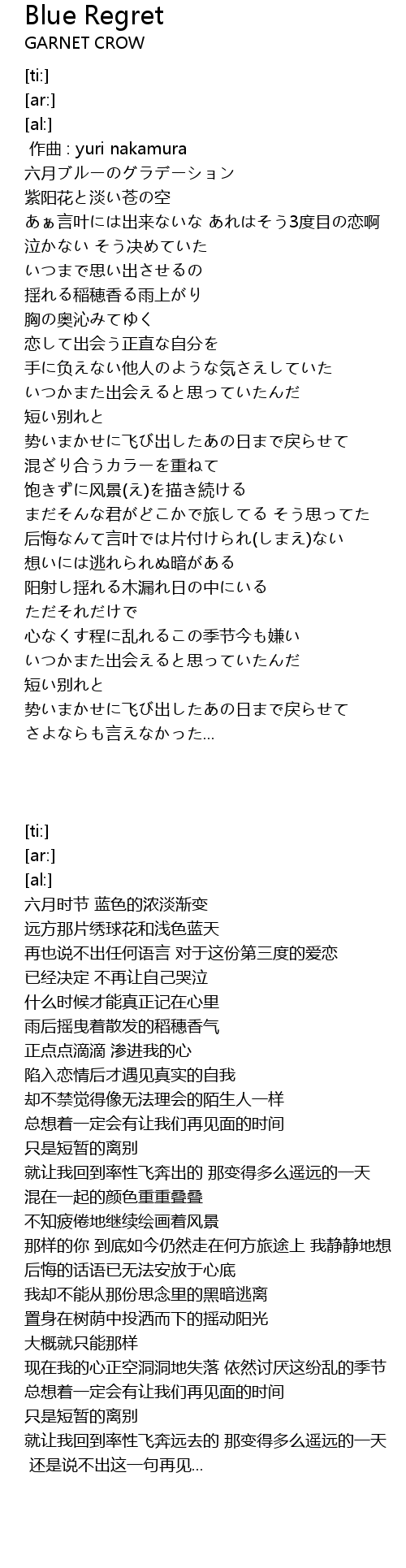 | [00:00.00] | zuò qǔ : yuri nakamura |