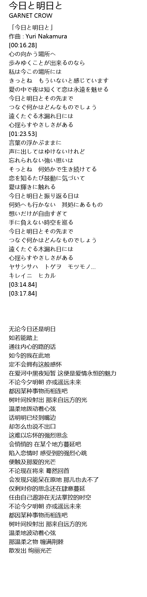 | [00:01.28] | 「今日と明日と」 |