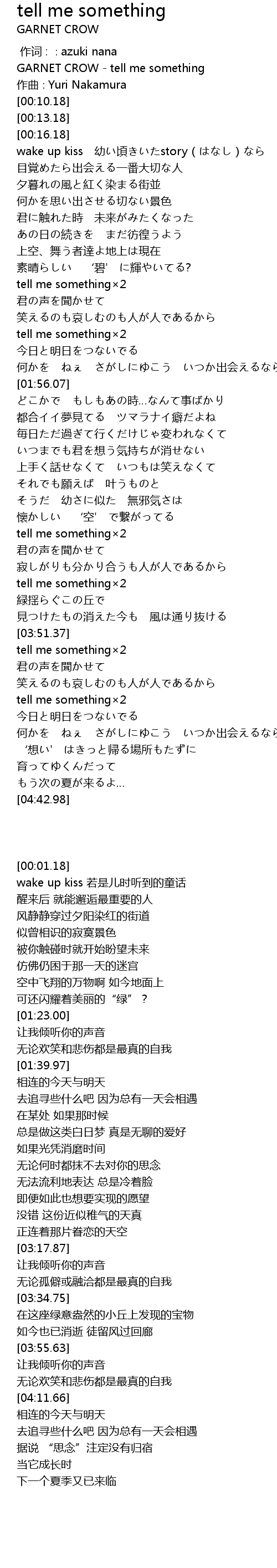 | [00:18.18] | wake up kiss yòu qǐng story |