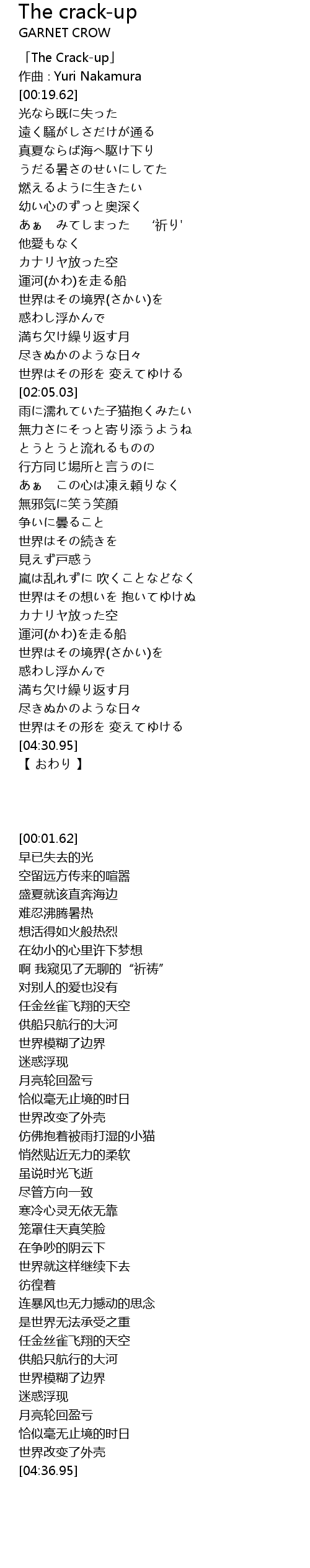 | [00:11.62] | zuo qu Yuri Nakamura |