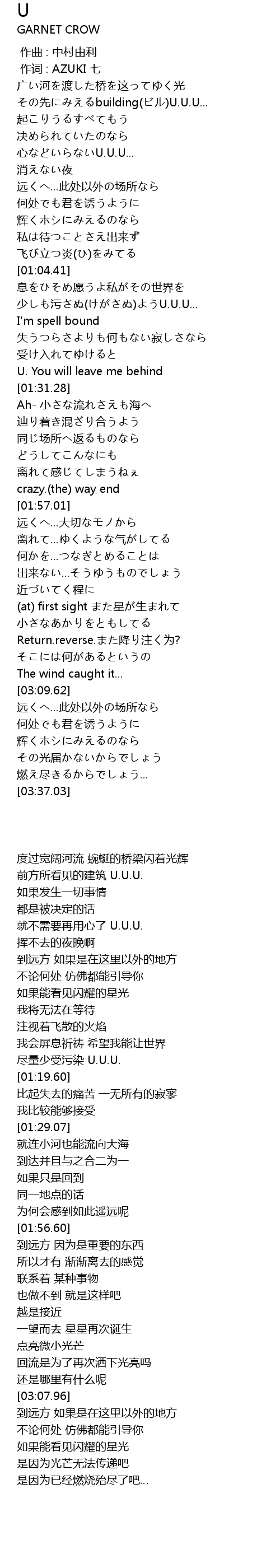 | [01:15.24] | 少しも污さぬ(けがさぬ)ようU.U.U... |