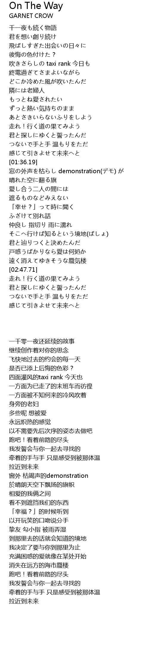 | [00:36.34] | 終電過ぎてさまよいながら |