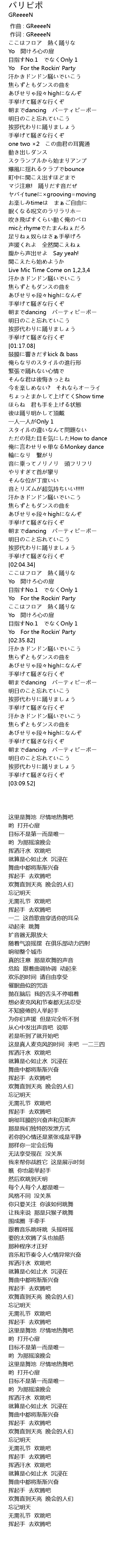 | [01:09.09] | 朝までdancing パーティピーポー |