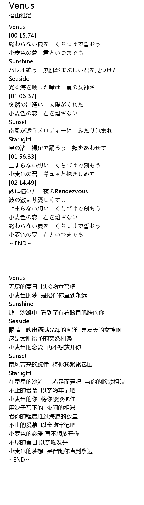 | [00:53.43] | 光る海を映した瞳は 夏の女神さ |