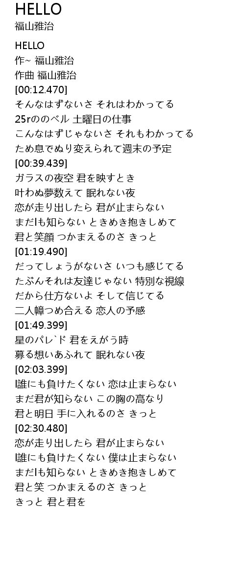 | [03:03.460] | 恋が走り出したら 君が止まらない |