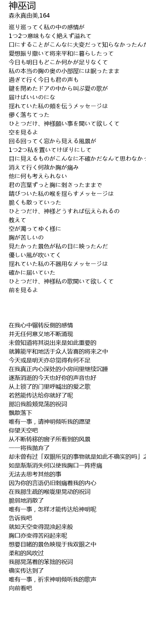 | [02:18.84] | ひとつだけ、神様どうすれば伝えられるの |