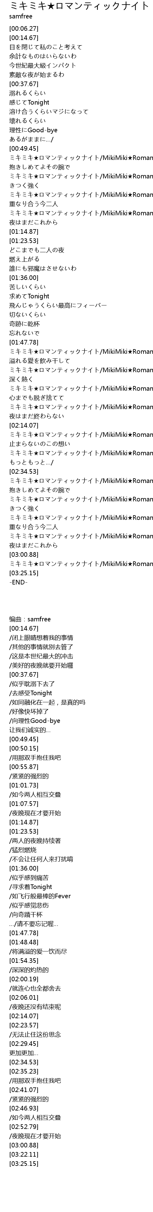 | [02:35.23] | MikiMiki RomanticNight |