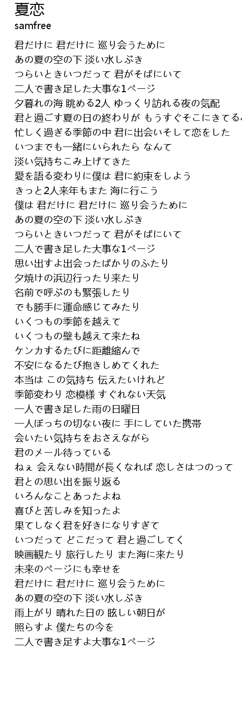 | 君と過ごす夏の日の終わりが もうすぐそこにきてるみたい | |