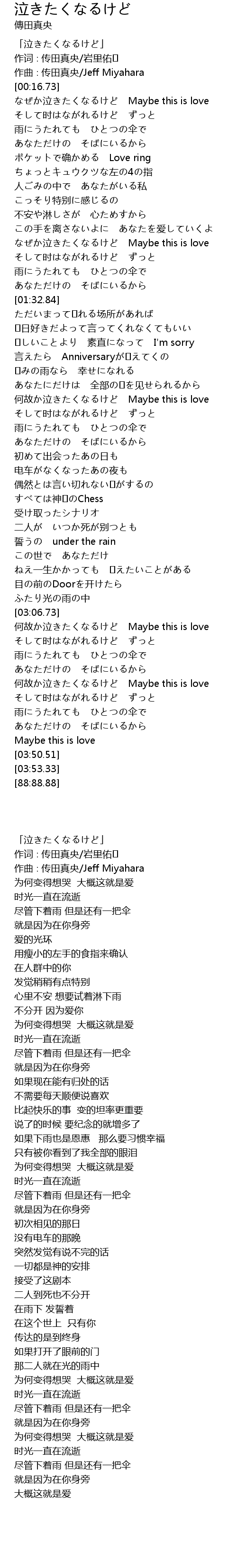 | [03:25.55] | 何故か泣きたくなるけど Maybe this is love |