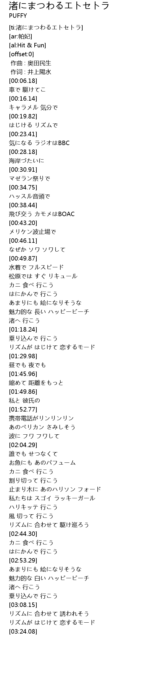 | [01:11.46] | 魅力的な 長い ハッピービーチ |
