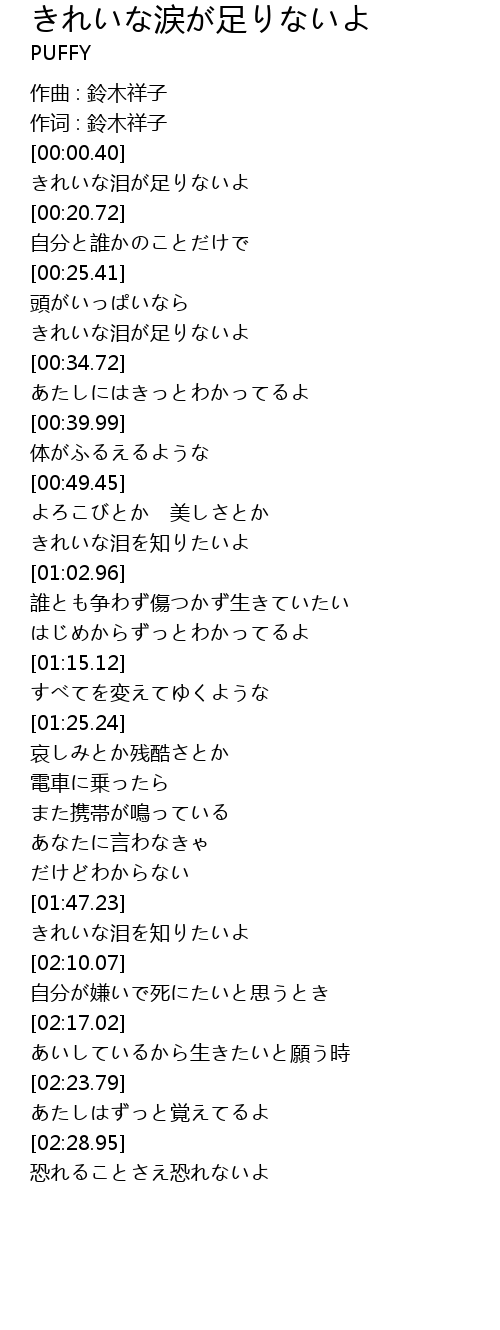 きれいな涙が足りないよ lei zu Lyrics