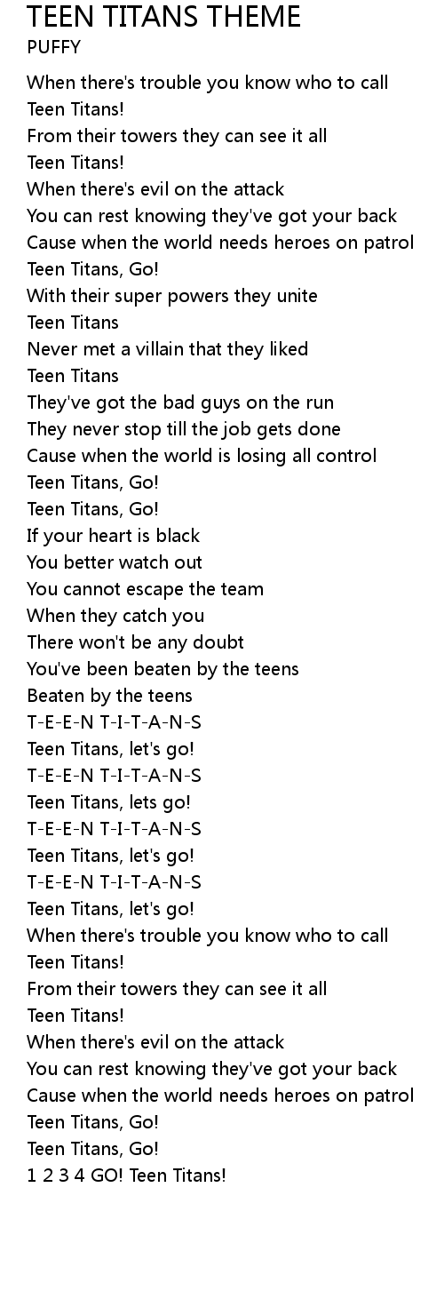 | [01:49.57] | T-E-E-N T-I-T-A-N-S |
