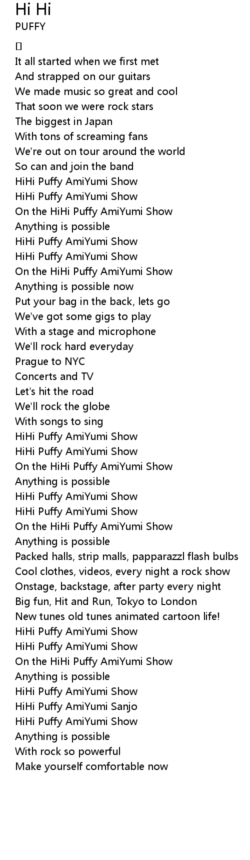 | HiHi Puffy AmiYumi Sanjo | |
