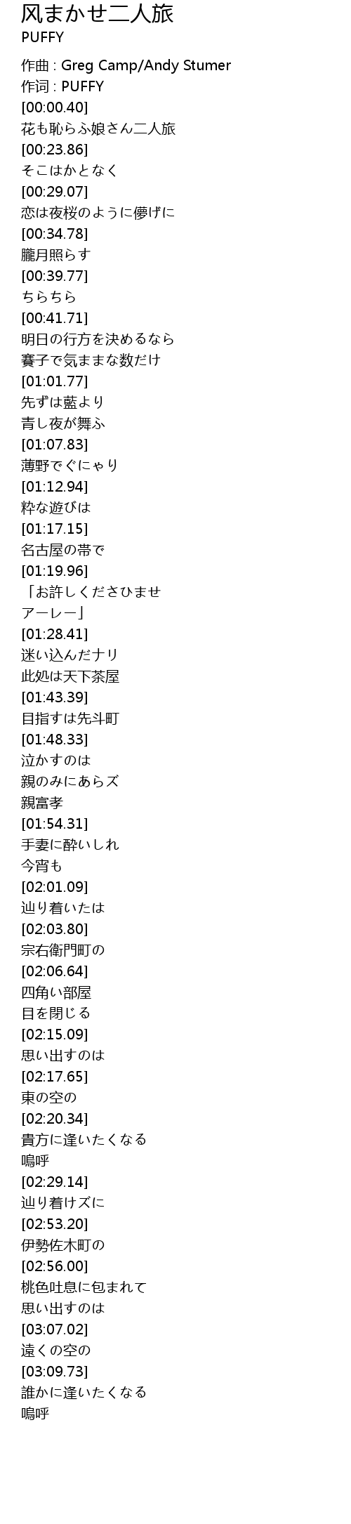 | [00:19.66] | 花も恥らふ娘さん二人旅 |