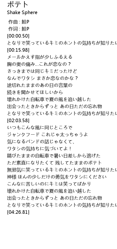 | [03:17.11] | ただ素直になりたくて 残してたままのポテト |