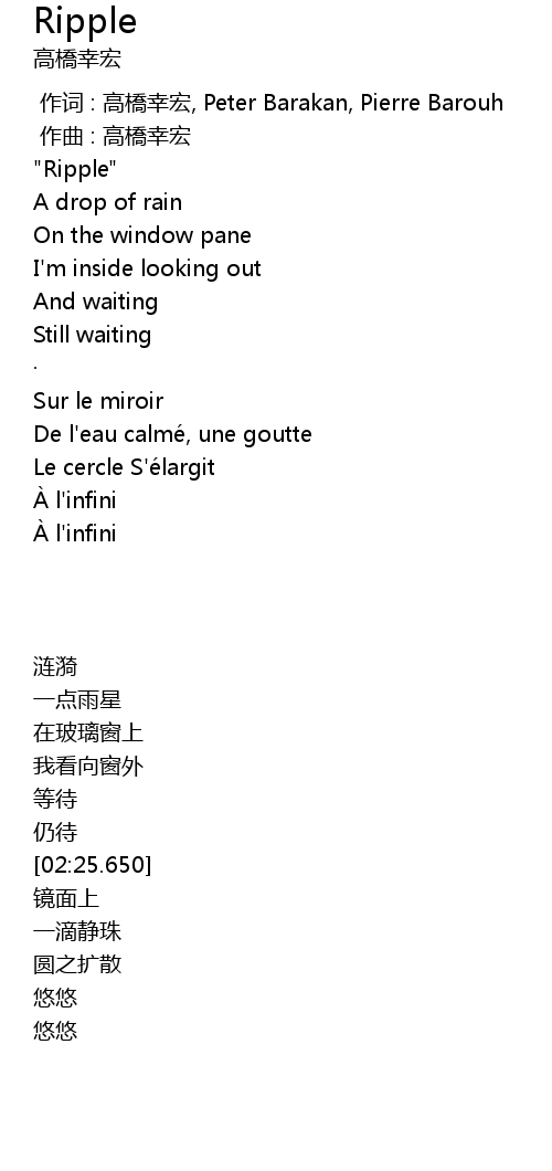 | [00:00.000] | 作词 : 高橋幸宏, Peter Barakan, Pierre Barouh |