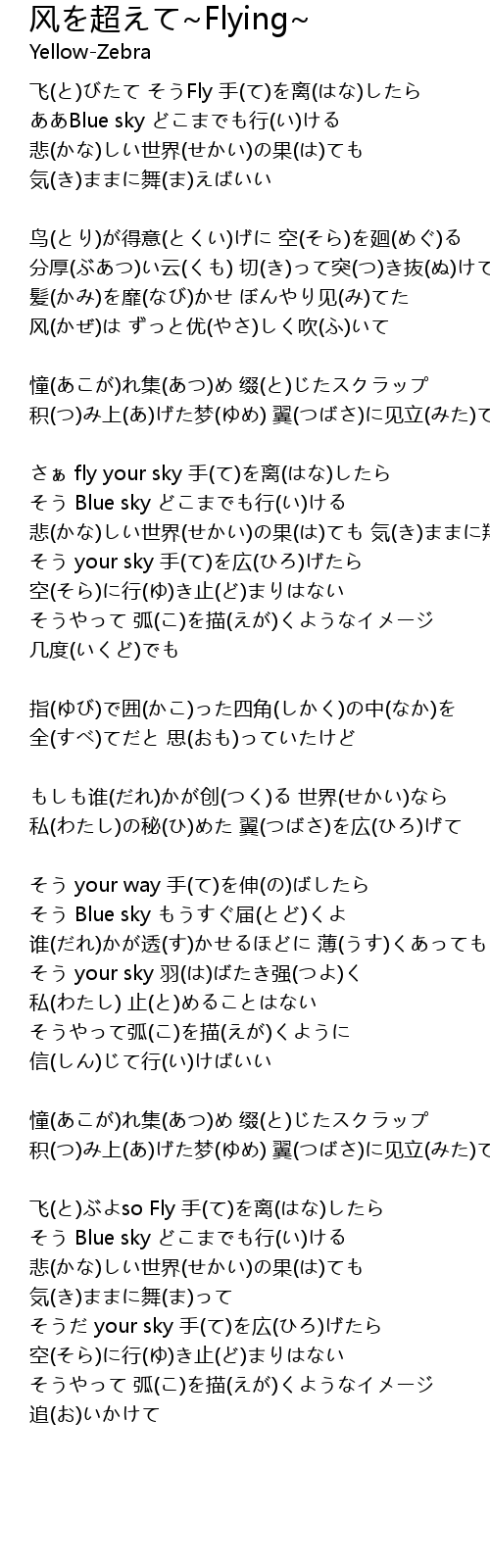 | 飞(と)ぶよso Fly 手(て)を离(はな)したら | |