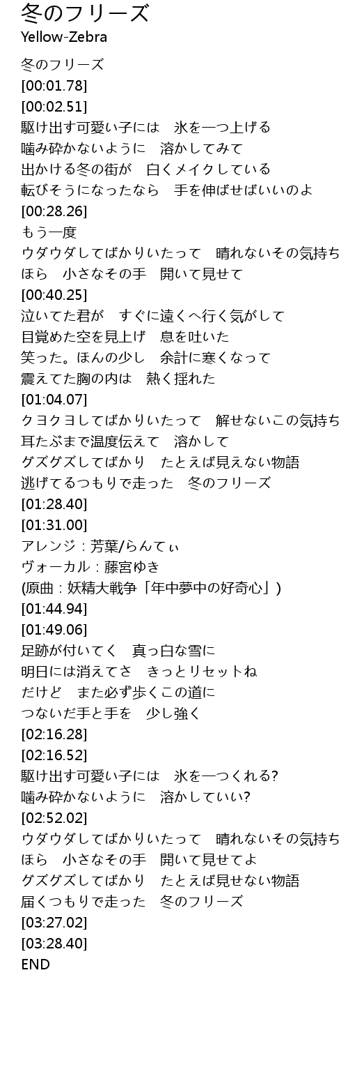| [03:10.39] | 届くつもりで走った 冬のフリーズ |