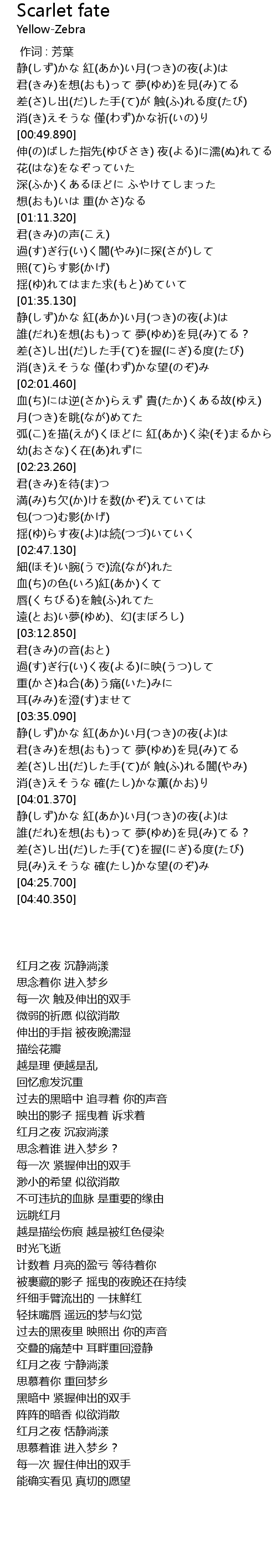 | [04:02.000] | 静(しず)かな 紅(あか)い月(つき)の夜(よ)は |
