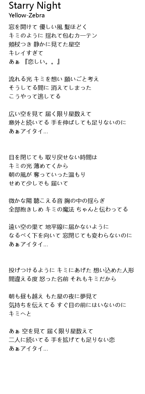| 広い空を見て 届く限り星数えて | |