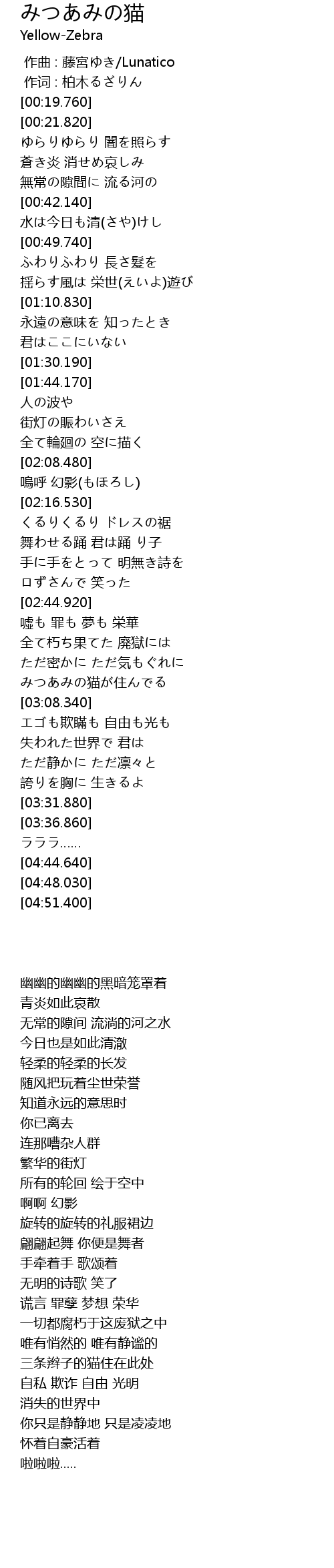 | [00:00.00] | 作曲 : 藤宮ゆき/Lunatico |