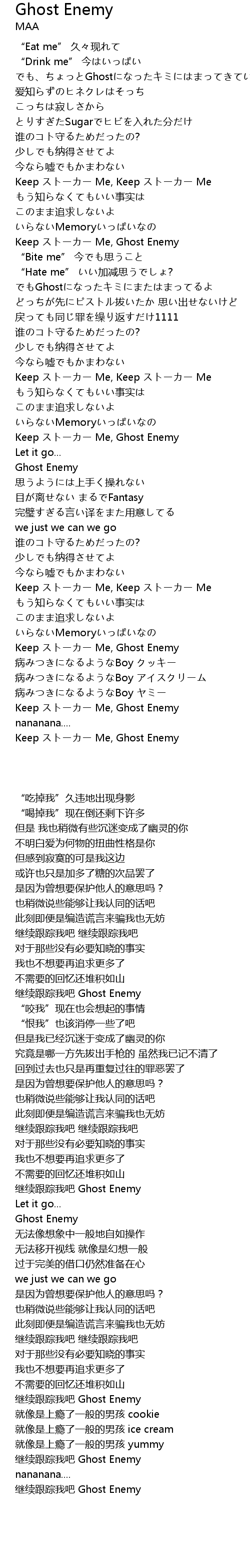 | [02:17.61] | Keep ストーカー Me, Ghost Enemy |