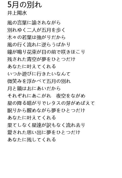 | [02:20.88] | 微笑みを浮かべて五月の別れ |