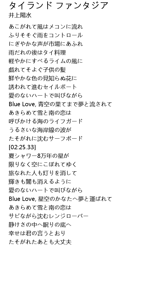 | [00:19.03] | あこがれて風はメコンに流れ |