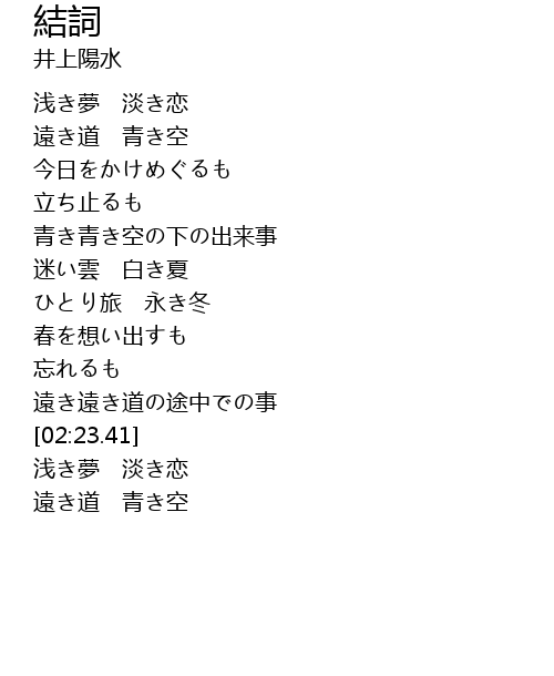 | [02:06.86] | 遠き遠き道の途中での事 |
