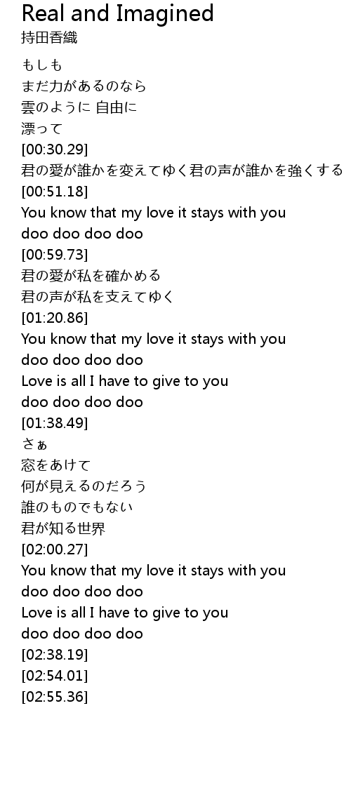 | [00:31.41] | 君の愛が誰かを変えてゆく君の声が誰かを強くする |