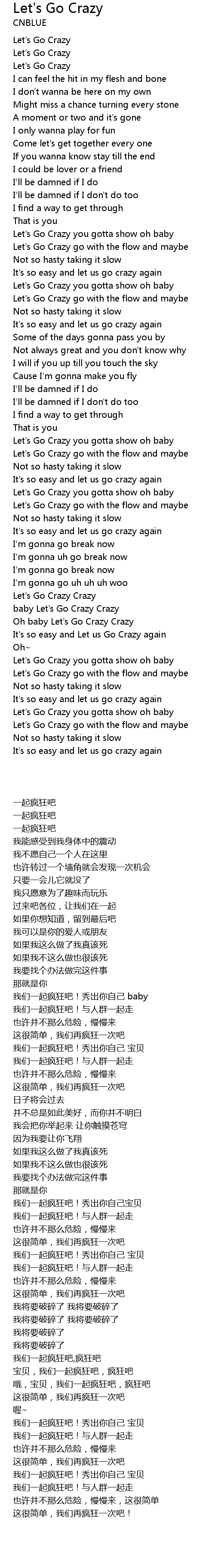 | [03:06.840] | Oh baby Let's Go Crazy Crazy |
