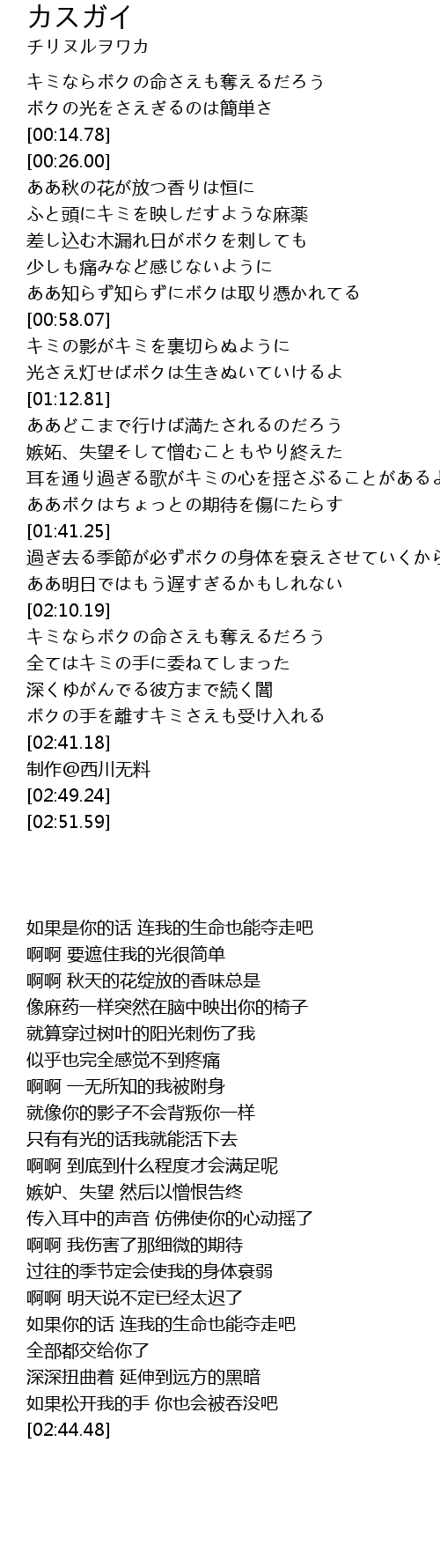 | [02:12.75] | キミならボクの命さえも奪えるだろう |