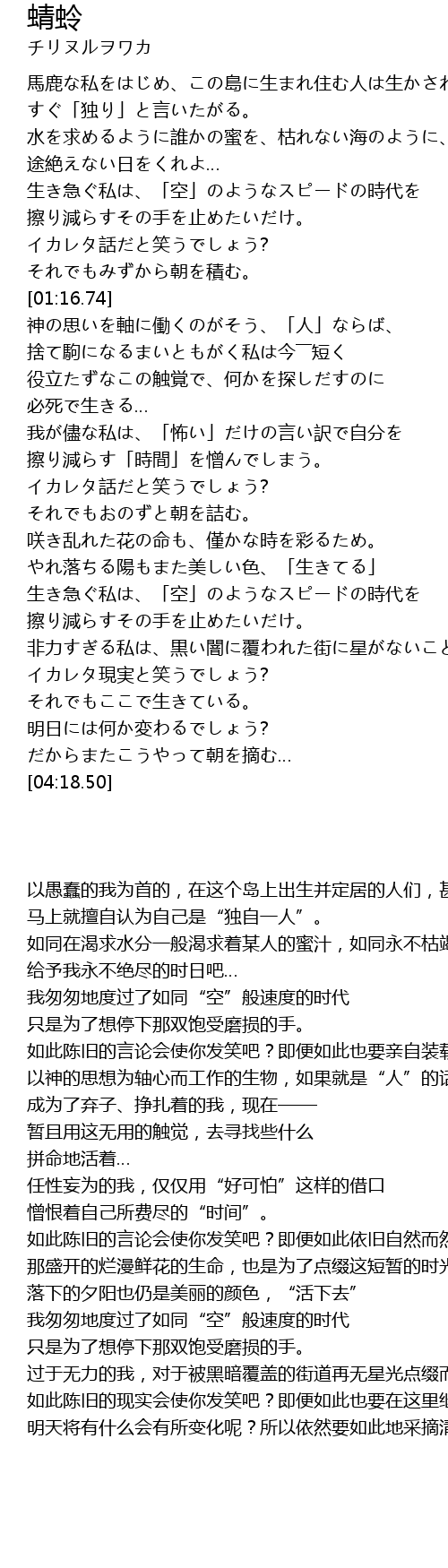 | [03:02.76] | やれ落ちる陽もまた美しい色、「生きてる」 |