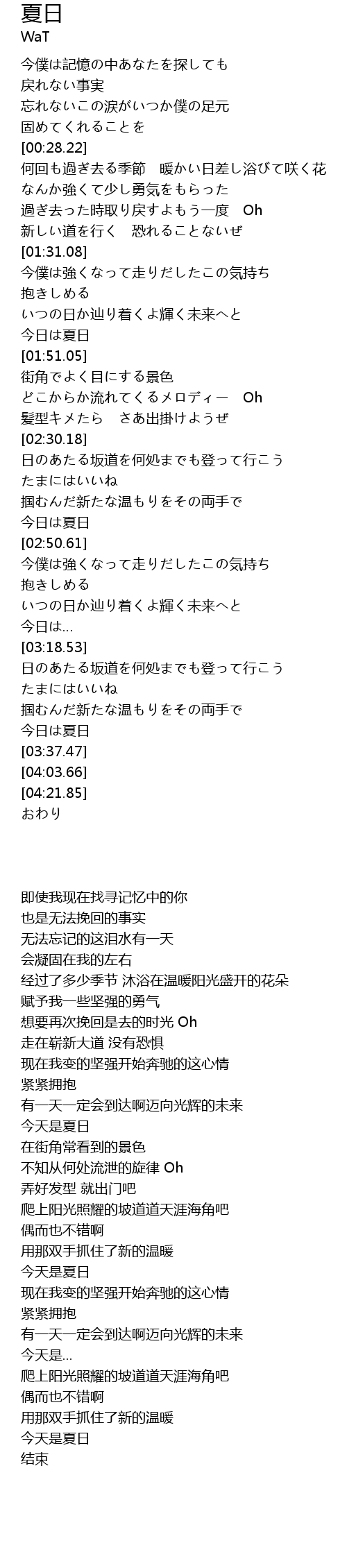 | [02:08.17] | どこからか流れてくるメロディー Oh |