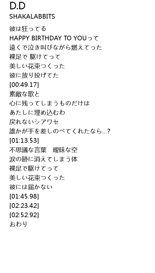 | [00:35.31] | HAPPY BIRTHDAY TO YOUって |