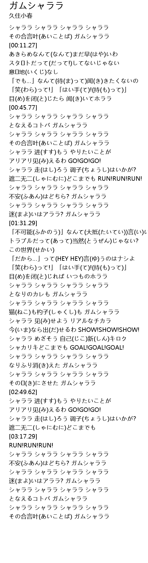 | [02:45.17] | その�(き)にさせた ガムシャララ |