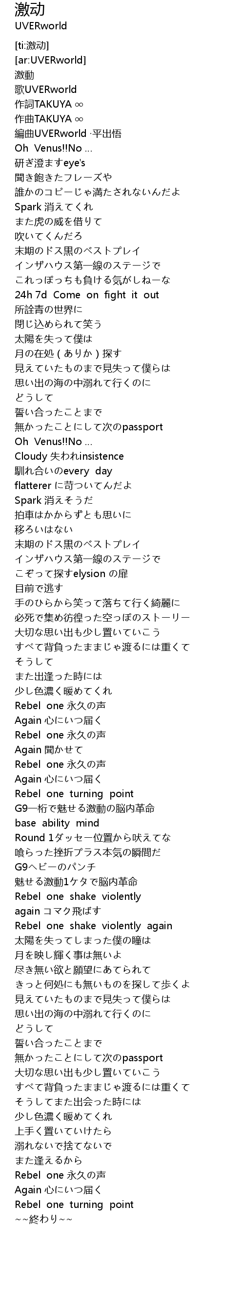 | [00:20.71] | 作詞TAKUYA ∞ |