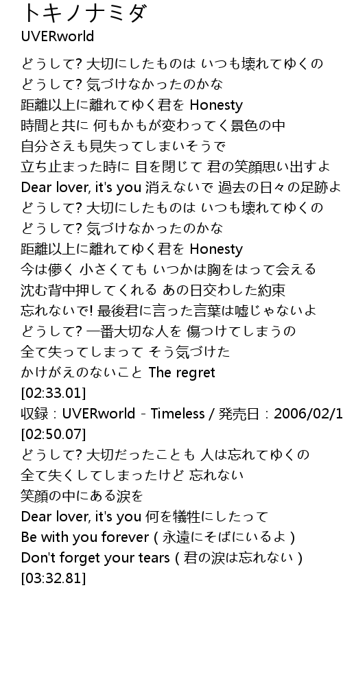 | [02:36.01] | 収録:UVERworld - Timeless/発売日:2006/02/15 |