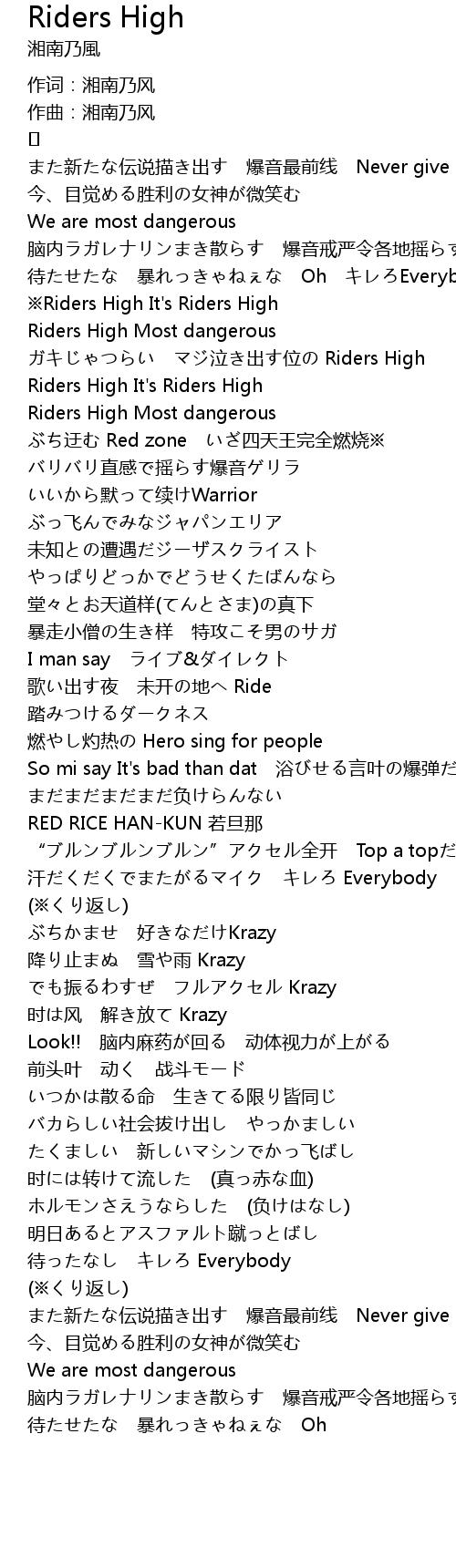 | ※Riders High It's Riders High | |