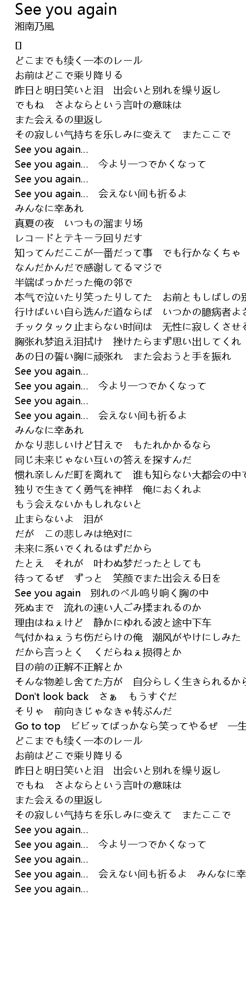 | See you again 别れのベル鸣り响く胸の中 | |