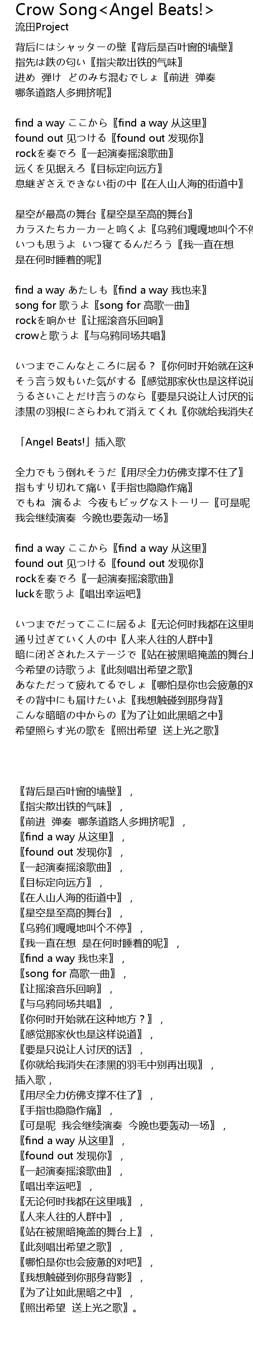 | Song | Crow Song<Angel Beats!> |