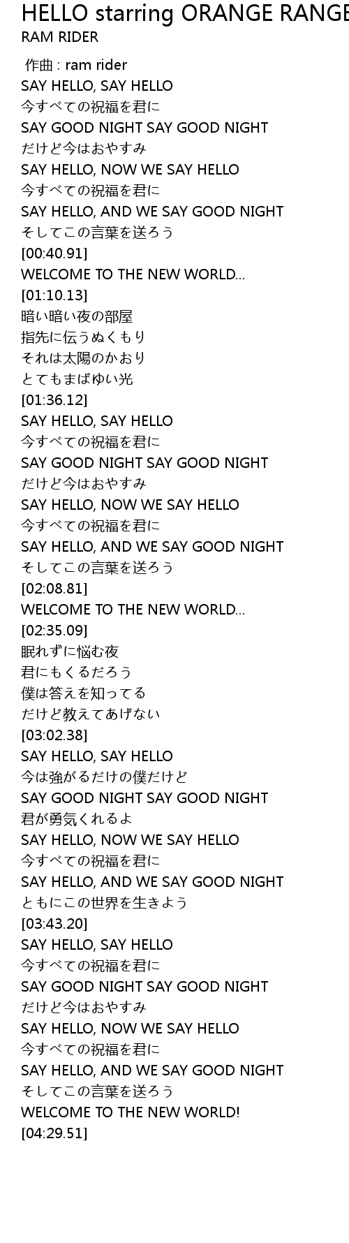 | [01:38.16] | SAY HELLO, SAY HELLO |