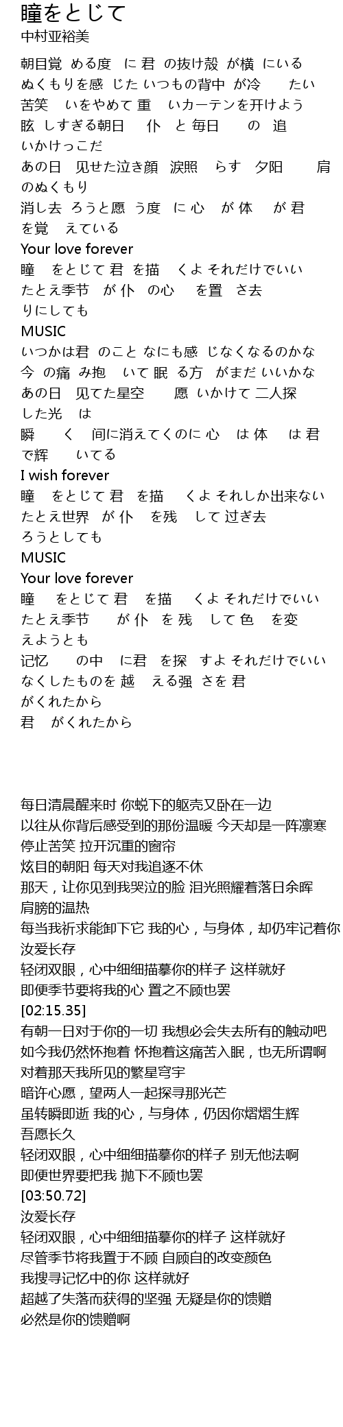 | [04:15.09] | 瞳 をとじて 君 を描 くよ それだけでいい |